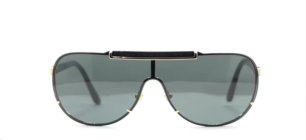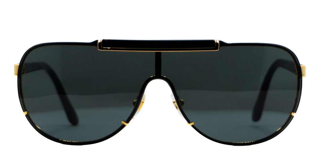 Lentes de sol VERSACE MOD 2140 1002 87 135 3N. En forma cuadrada aviador, marco de pasta color negro, varillas delgadas de pasta negro con adorno dorado en los laterales. Peso: 30.5 g