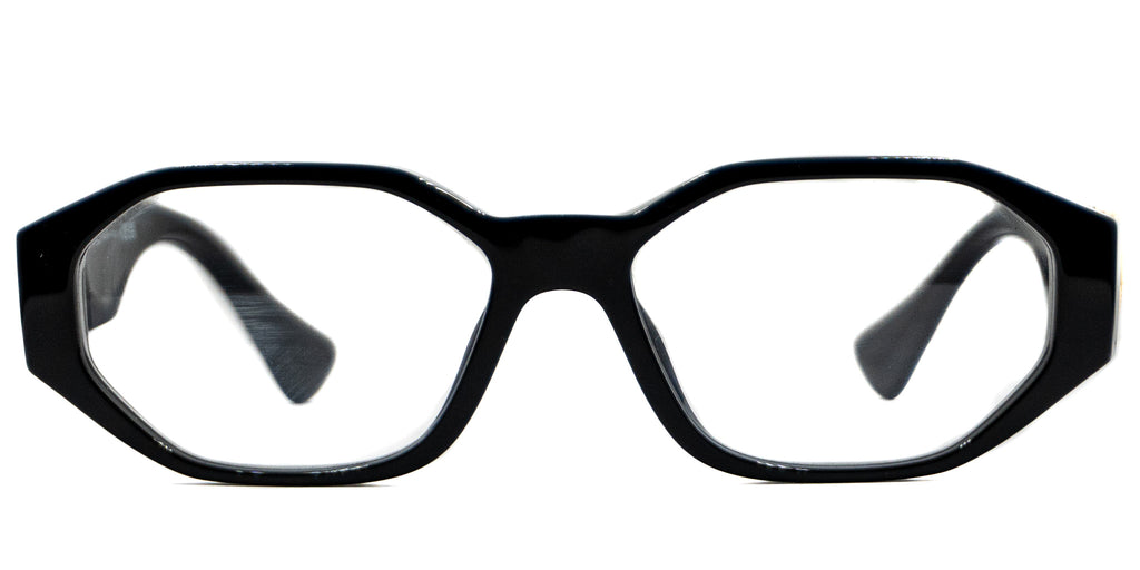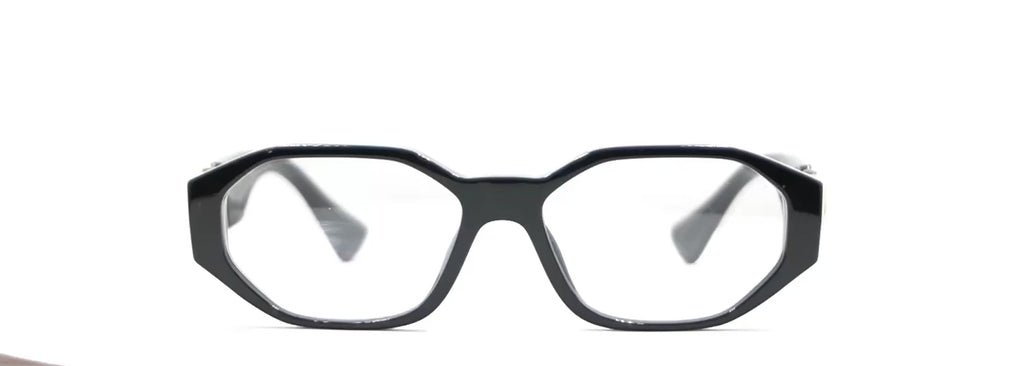 Lentes oftálmicos VERSACE MOD 3320 U GB1 56 16 145. En forma cuadrada hexagonal, marco de pasta color gris traslucido, varillas gruesas de pasta gris traslucido con adorno plateado en los laterales. Peso: 43.9 g