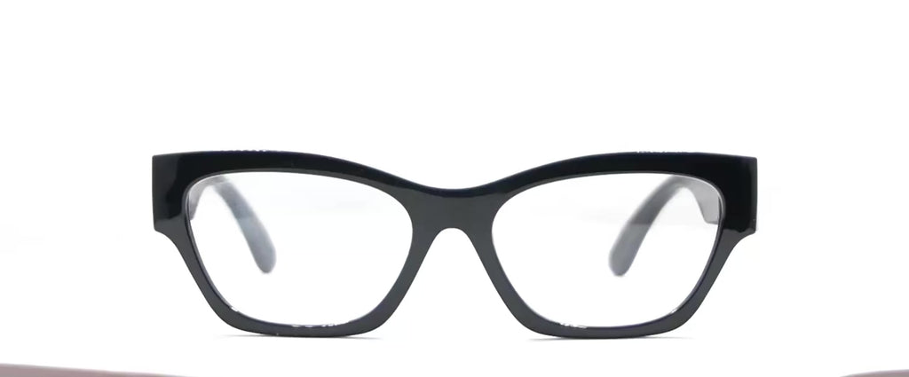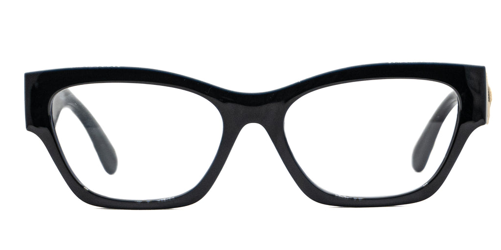 Lentes oftálmicos VERSACE MOD 3367 U GB1 54 17 140. En forma cuadrada cat eye, marco de pasta color negro completo, varillas gruesas de pasta color negro con adorno dorado en los laterales. Peso: 43.2 g