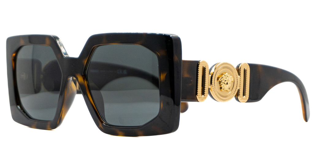 Lentes de sol VERSACE MOD 4478 U 108 87 55 17 140 3N. En forma cuadrada grandes, marco de pasta color negro con cafe completo carey, varillas gruesas de pasta color negro con cafe carey, con adorno dorado en los laterales. Peso: 60.0 g