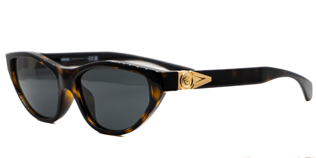 Lentes de sol VERSACE MOD 4491 U 108 87 55 16 140 3N. En forma oavalada cat eye, marco de pasta color cafe oscuro carey, varillas delgadas de pasta color cafe oscuro carey con adorno dorado en los laterales. Peso: 33.4 g