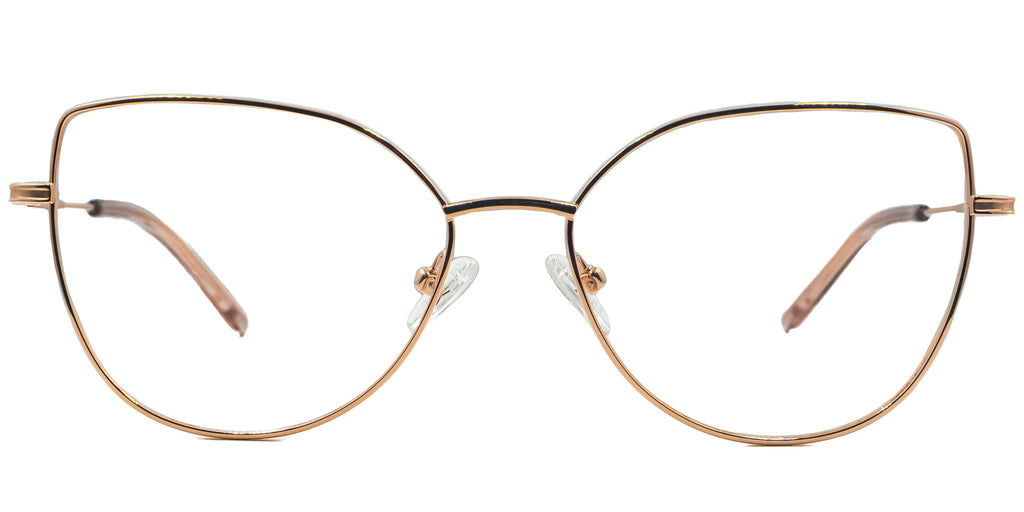 Lentes Oftalmicos VX TITANIUM VVX 0007B 0BRN 56. En forma ovalada tipo cat eye, marco de metal color dorado con varillas delgadas de pasta color dorado con terminacion en pasta traslucida. Peso: 14.9 g