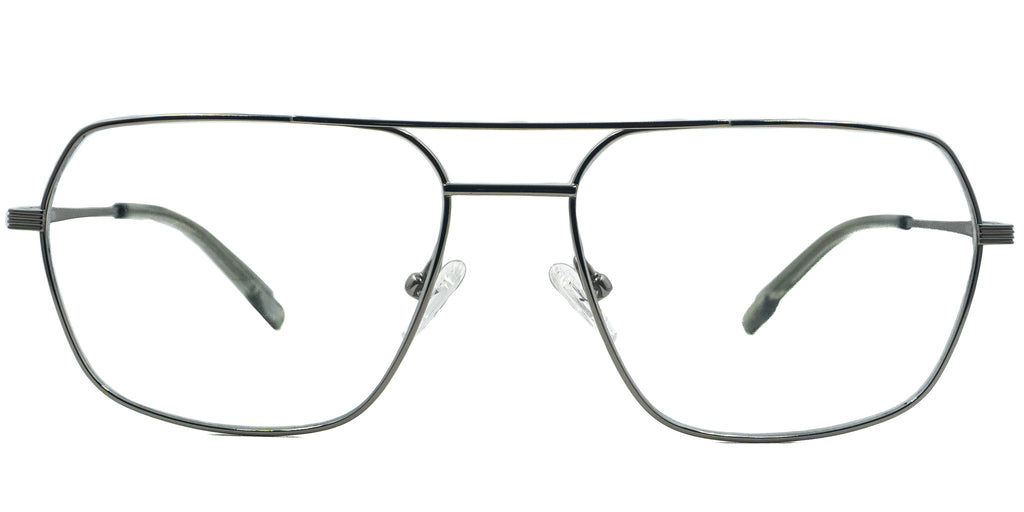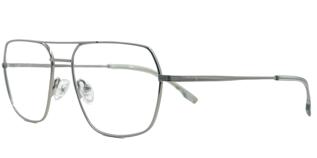 Lentes Oftalmicos VX TITANIUM VVX 0008A 0GRN 57. En forma cuadrada con puente tipo aviador, marco de metal color gris oscuro, varillas delgadas de emtal color gris oscuro con terminacion en pasta color negro. Peso: 14.6g