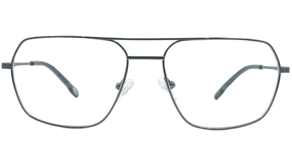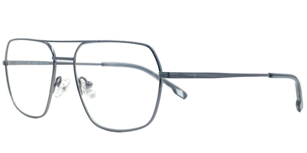 Lentes Oftalmicos VX TITANIUM VVX 0008A DGRY 57. En forma cuadrada con puente tipo aviador, marco de metal color negro metalico, varillas delgadas de metal color negro metalico con terminacion en pasta color negro. Peso: 14.4 g